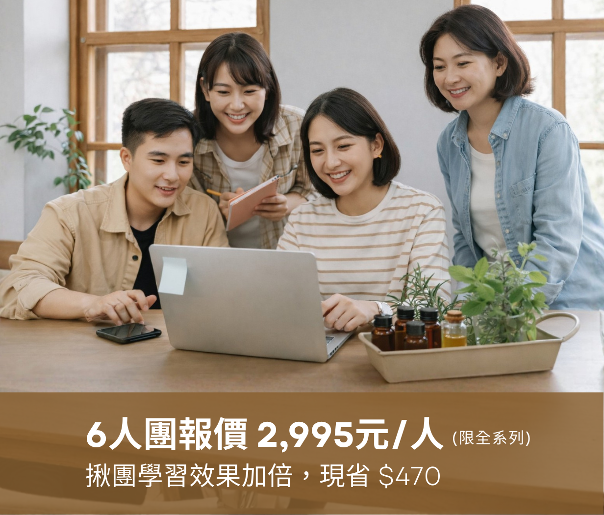 芳香學苑15週年特別企劃 每天30分鐘|4 位芳療導師陪讀 不需醫療背景也能用900分鐘 安全、安心建立你的居家精油藥草箱